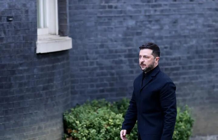 10月24日,在英国伦敦,乌克兰总统泽连斯基走向唐宁街10号首相府。 新华社记者李颖摄