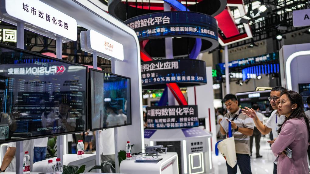 2025年8月28日,参展商与不雅展者在2025中国外洋大数据产业展览会会场交流城市数智化实践情况。新华社记者陶亮 摄